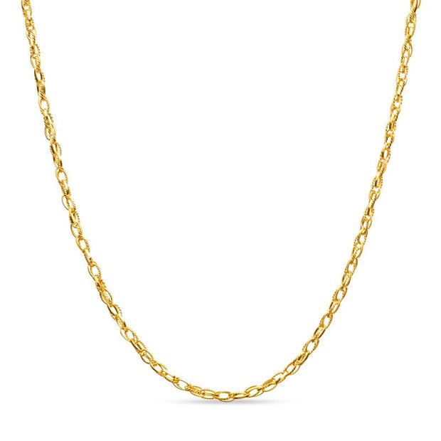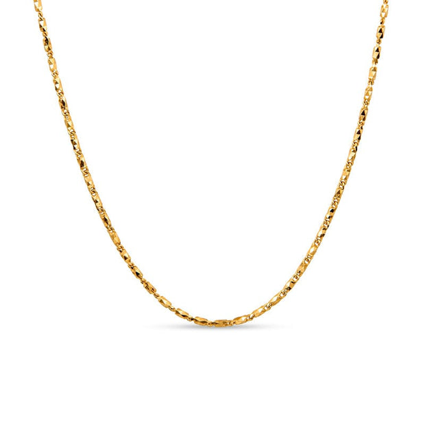 Regular price $355.00 Save $-355.00Introducing the diamond cut cable link! Made with 18K yellow gold, this cable link is perfect for adding a touch of elegance to any outfit. Its 1.0mm-1.5mm size offers a delicate and versatile look, making it a must-have for any jewelry collection.