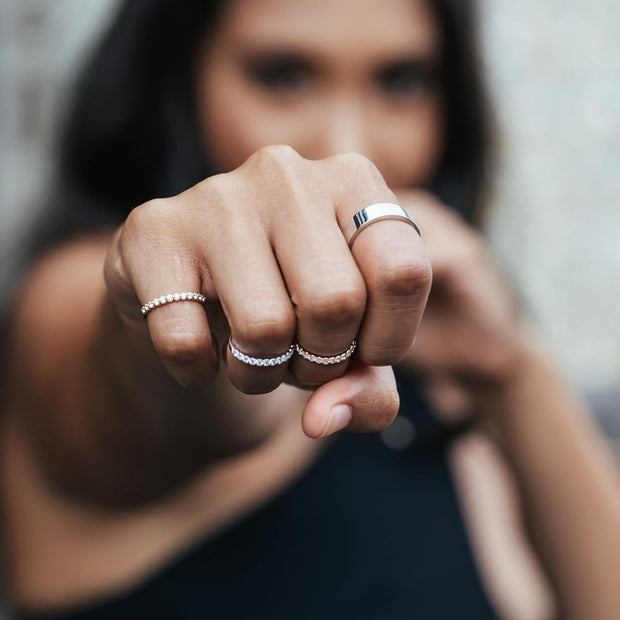 Regular price $3,150.00 Save $-3,150.00The Mulia Band is bold beauty at its finest. Our widest diamond band, it features a channel-style micro-pavé setting that creates a seamless ribbon of light across the finger. Its dramatic width and brilliant sparkle make an unforgettable statement, while the soft touch of romance in its design adds depth and elegance. Whether worn alone or paired with your favorites, this is the ring that turns every glance into admiration.
