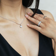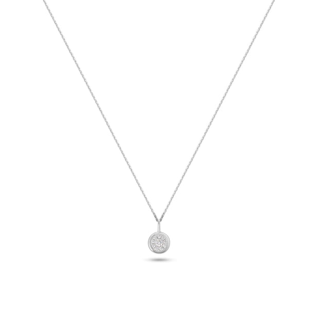 Regular price $615.00 Save $-615.00This stunning Blessed Mary Diamond Pendant is crafted in 18K white gold. The delicate design and sparkling diamond in the middle make it the perfect accessory for any occasion. Feel blessed and radiate elegance with this timeless piece.