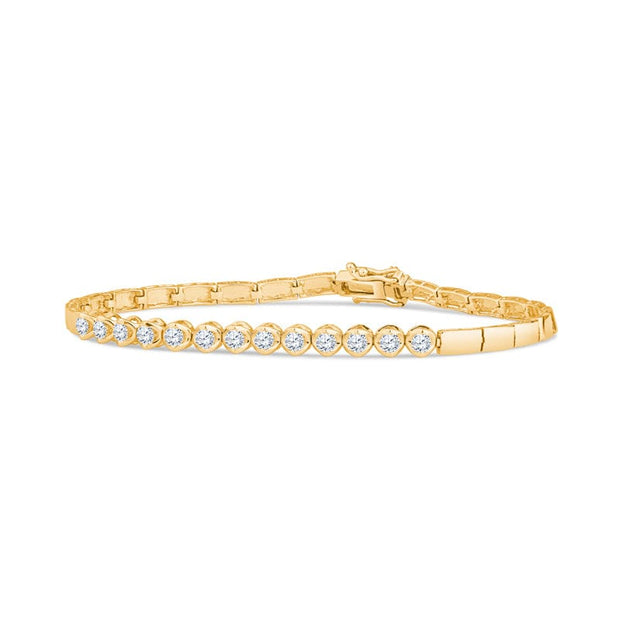 Regular price $9,200.00 Save $-9,200.00This double-row diamond tennis bracelet is designed to make an entrance. Crafted in luminous 18K yellow gold, it features 132 round diamonds totaling 3.49 carats that create an unmistakably bold, high-impact shine. The two-row silhouette gives it a modern, sculptural presence on the wrist, turning classic elegance into a statement of pure confidence. Dramatic, luxurious, and impossible to overlook, this is the bracelet for those who want their sparkle to speak for itself.