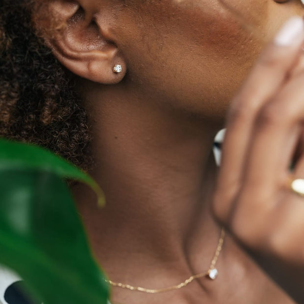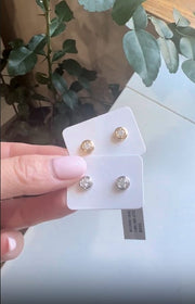 Regular price $1,550.00 Save $-1,550.00Diamond stud earrings are a must-have in any wardrobe. Our modern style is situated low with a modest showing of gold allowing for uninterrupted views of the brilliant diamond.