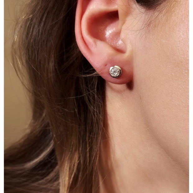 Regular price $410.00 Save $-410.00It’s never too early for diamonds! These bezel stud earrings are a great choice for a starter pair. The post has a double notch that helps secure the tension backs, also included are the jelly backs for interchangeability.