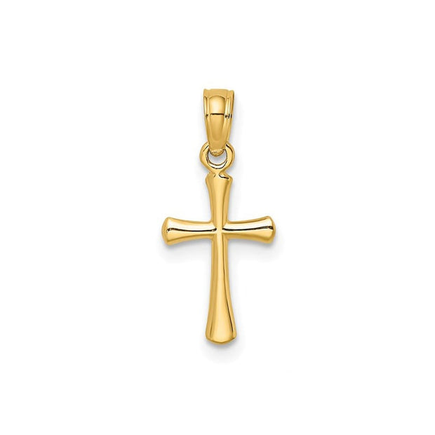 Regular price $250.00 Save $-250.00Celebrate your innermost faith with elegance wearing this 18K yellow or white gold Cross pendant, artfully crafted in a bright polished finish. A glittering round brilliant diamond solitaire accent stone sits nestled in the center of this lightweight Cross. A slim oblong bail awaits your favorite delicate chain.