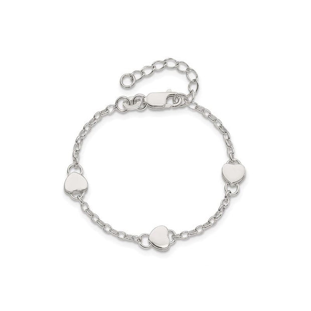 Regular price $48.00 Save $-48.00This delightful children's bracelet features a charming sterling silver heart design that is perfect for any young girl. Crafted from high-quality .925 silver, it ensures durability while maintaining a lightweight feel. The bracelet measures 5.00 inches in length and includes a convenient one-inch extender, making it easy to adjust for a perfect fit.