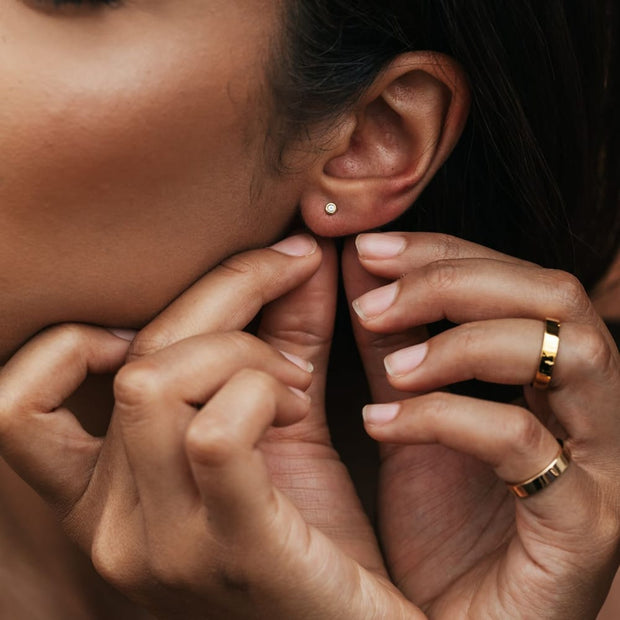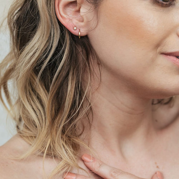 It’s never too early for diamonds! These bezel stud earrings are a great choice for a starter pair. The post has a double notch that helps secure the tension backs, also included are the jelly backs for interchangeability.