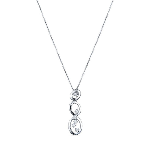 A decadent row of free-falling oval and round open halo bubbles filled with sparkling diamonds gives this handcrafted 18K white gold linear pendant unique abstract artistry with smooth lines. Perfect for pairing with a chain of your selection or layered with other necklaces for a highly accessorized style customized for you.