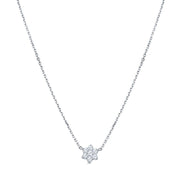 No two stars are alike, giving them each a remarkable mystery. Seek inspiration from the serenity of the sky and constellations with this handcrafted 18K white gold diamond pendant necklace, filled with sparkling round brilliant cut natural diamonds placed in a decadent cluster of fire and ice. An 18” square diamond-cut cable chain attaches to this starry diamond pendant on both sides, allowing it to sit centered.