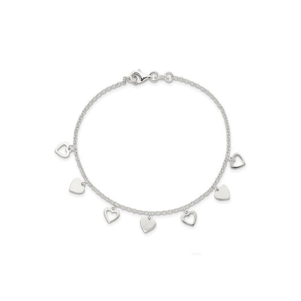 Embrace the charm of our Sterling Silver Hearts Bracelet. Measuring 7.50 inches, this delightful piece adds a romantic touch to any outfit, making it perfect for everyday wear. Its cute heart designs make it a lovely gift for someone special or a wonderful treat for yourself.