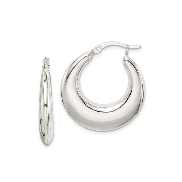 Elevate your accessory game with these chic Tapered Round Hoop Earrings crafted from high-quality sterling silver. Designed for the modern woman, their sleek rounded shape embodies a trendy and fashion-forward style. With a comfortable weight of 6.29 grams, these earrings are perfect for everyday wear or special occasions.