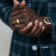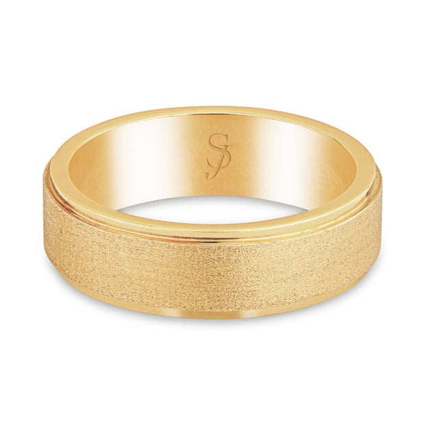 The Surya Band radiates strength and tradition. Its matte, sandy center reflects the warm glow of the sun, while the high-polish borders add a bright, commanding contrast. Bold in presence yet rooted in classic design, this ring carries the timeless power of light and the enduring beauty of heritage.